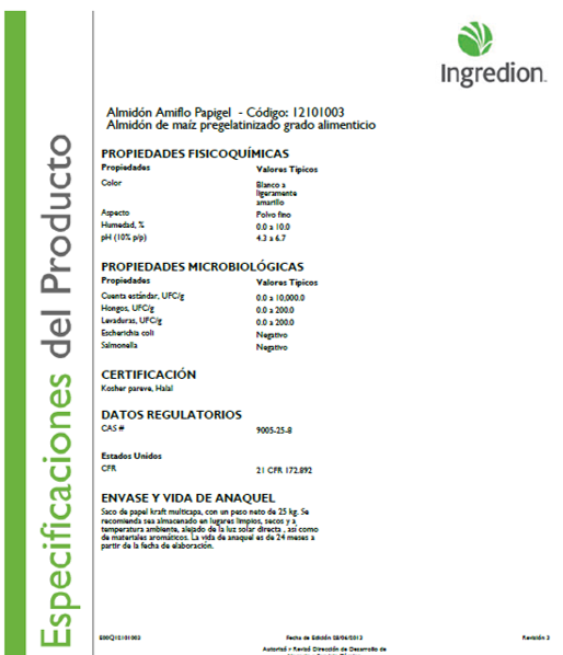 ALMIDÓN DE MAÍZ AA GRADO ALIMENTICIO